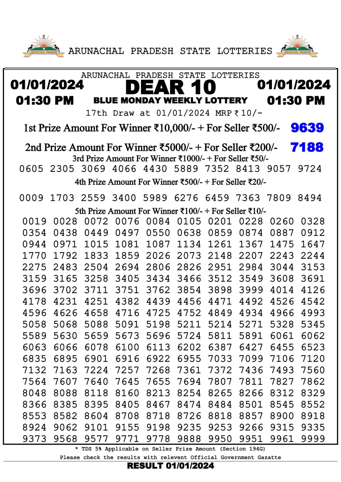 Golden 1000 dhamaka lottery result ,7:30 pm,31.01.2024.